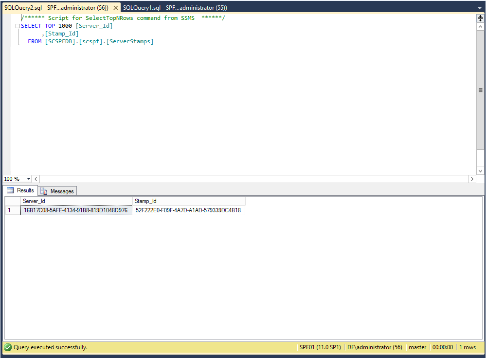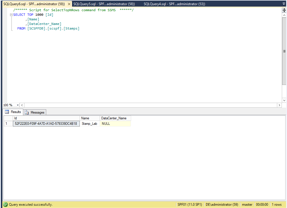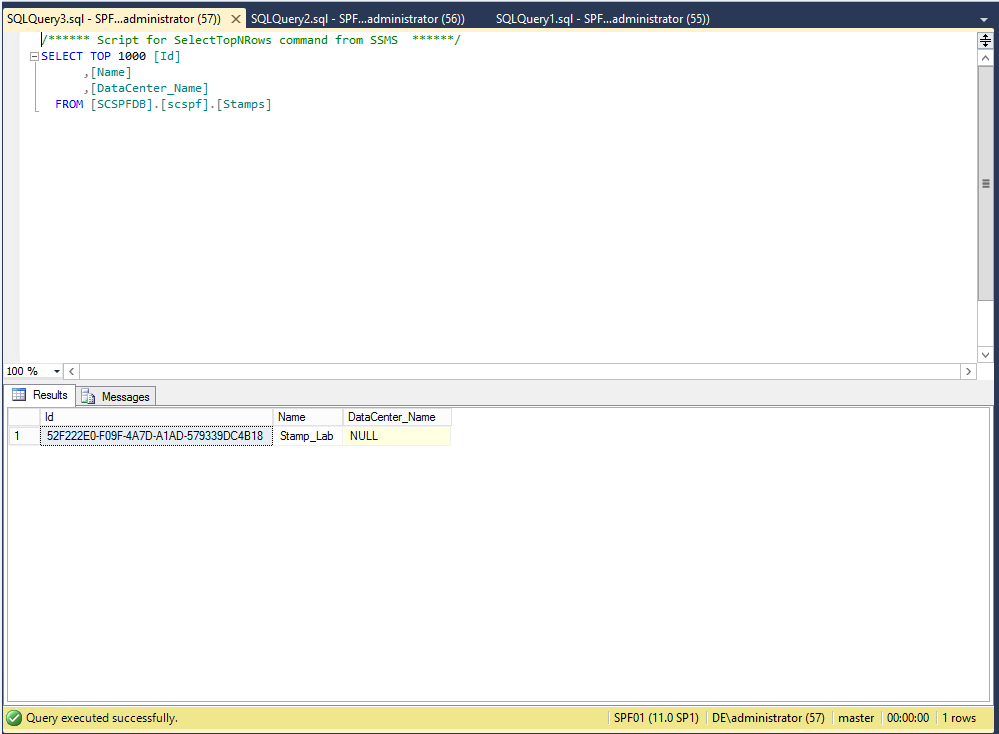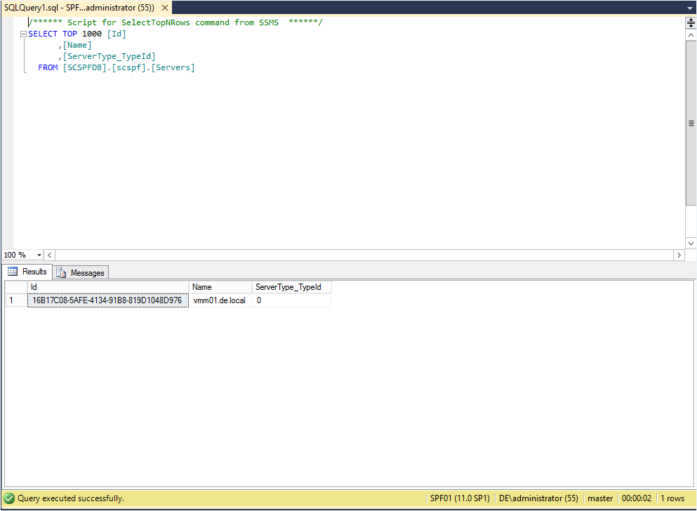 Next step is to populate some data in SPF in order to have some information before deploying the second SPF server. I’ve added a VMM server and associated it with Stamp. You can see that information directly in the database.