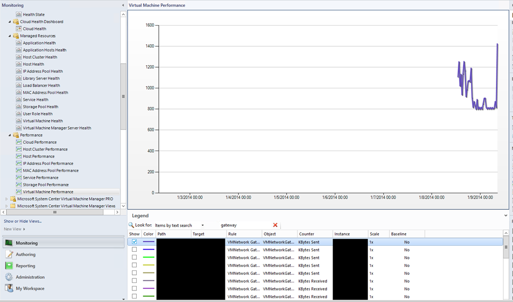 After long holiday break I am back. On this post I want to introduce you to an issue I’ve spotted and to which of course I’ve found an easy solution. With System Center 2012 R2 Virtual Machine Manager and Windows Server 2012 R2 we have the role of Windows Server Gateway (Multi-Tenant RRAS role) which is part of the Network Virtualization architecture (a dear to my heart topic). While on this topic I would like to remind you to check our whitepaper on it. So in short Windows Server 2012 R2 provides this role and Virtual Machine Manager manages it. But the integration doesn’t stops here as the VMM Management Pack (Fabric Monitoring MP) is able gather and store performance data trough the integration with SCOM. As Windows Server Gateway is a Tenant aware role performance data is collected and gathered for every Tenant S2S VPN or NAT connection which is very useful information. Now that you are introduced to what I am talking about I can continue to the exact issue. I’ve noticed that the data – KBytes Sent and KBytes Received for every S2S VPN and NAT connection was not showing in the Virtual Machine Performance view of the VMM MP. As on this view also performance data for virtual machines is shown you can filter it by the word “gateway”. I’ve seen similar issues with other MP’s so my first instinct was to stop the Microsoft Monitoring Agent service on the VMM server/s, clear the cache and start Microsoft Monitoring Agent again. After a while I’ve opened the view again and I was able to see that my corrective actions worked.