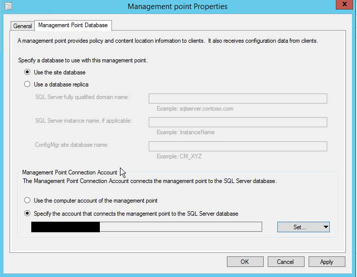 Changed the account of the Management Point. As this didn’t worked I’ve returned the configuration back to the computer account.