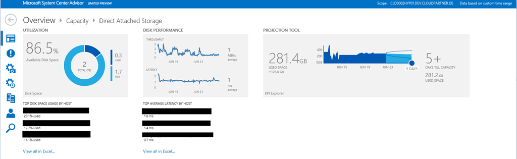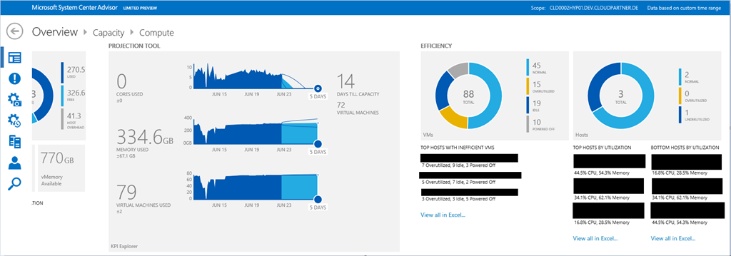 Before we continue exploring this Intelligence Pack I should mention that it has some prerequisites. In order to have some data being populated you will need to have setup SCOM – VMM Integration. This is required as the data that is being gather comes for the VMM Management Pack.