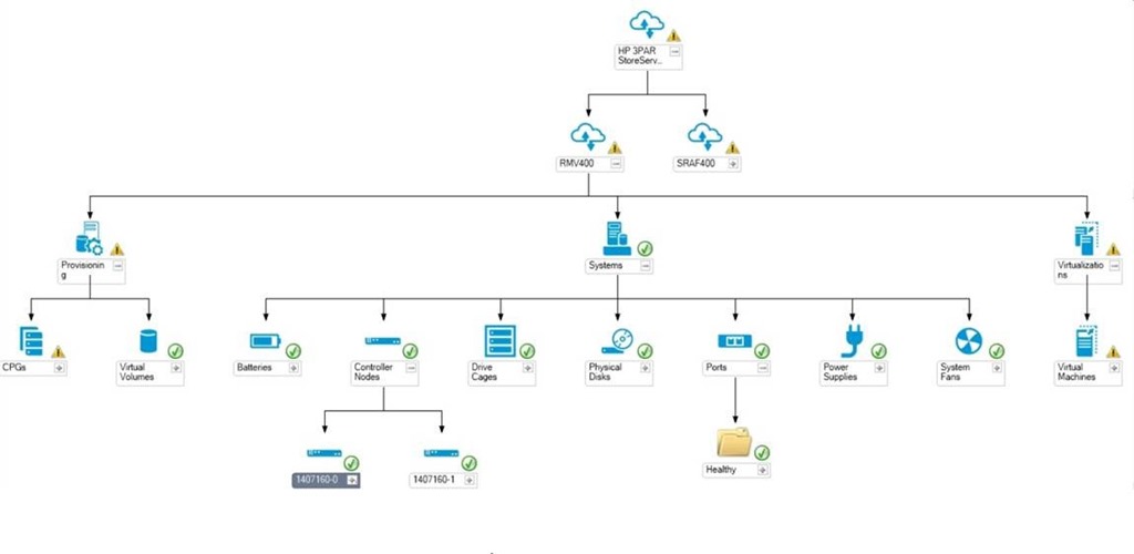 - Provisioning (CPGs, Volumes) and Virtualization (VMs) infrastructure monitoring for HP 3PAR. Extending the System infrastructure monitoring for HP 3PAR. New topology view: