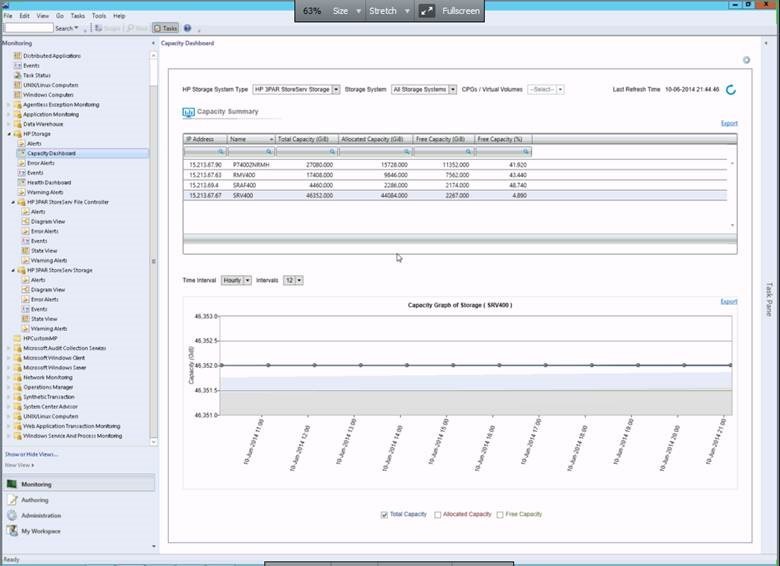 - User configurable dashboards for health and capacity monitoring for HP 3PAR Storage. New Capacity Dashboard: