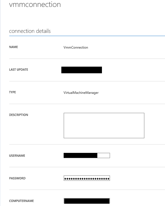 $VmmConnection = Get-AutomationConnection -Name ‘VmmConnection’