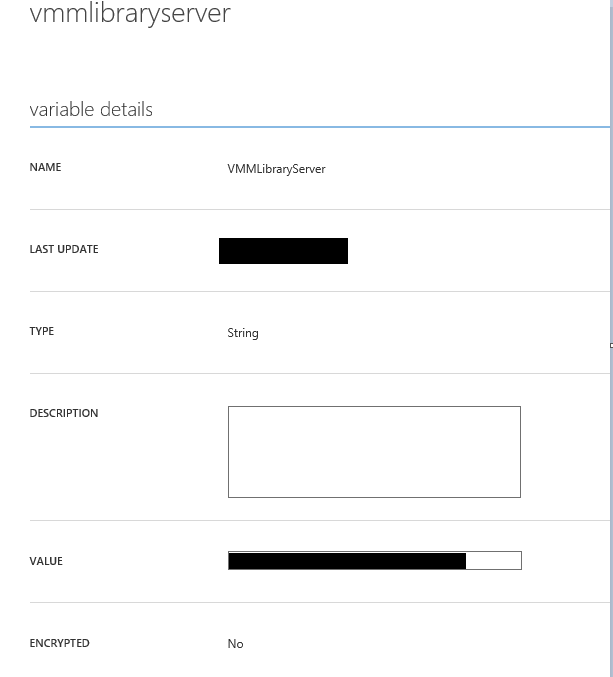 The last asset you need to create is also variable. For name use VMMLibraryServer and for value the FQDN of your VMM Library server.