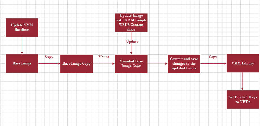The step of copying the updated images to your VMM library is manual but of course you can make that automatic. In fact you can make the whole solution automatic. There are certainly many ways to do that solution like using Orchestrator instead of SMA, mounting the images on your SMA servers and etc.