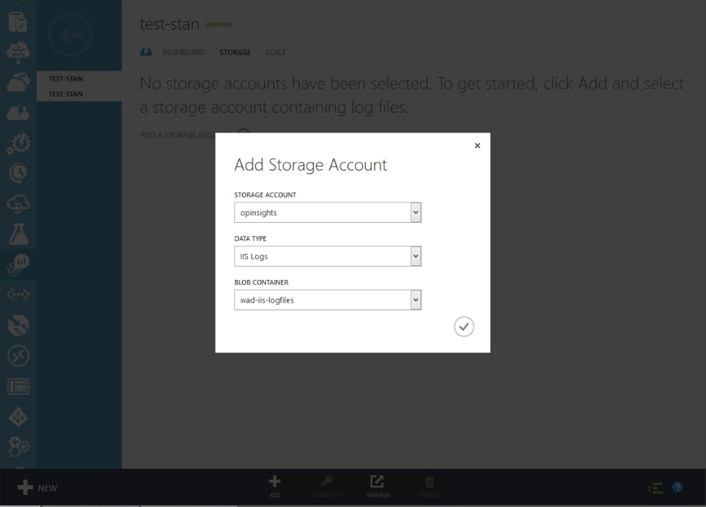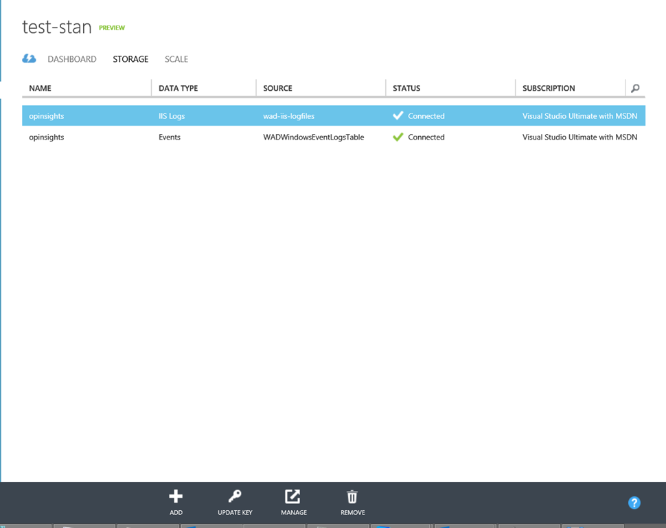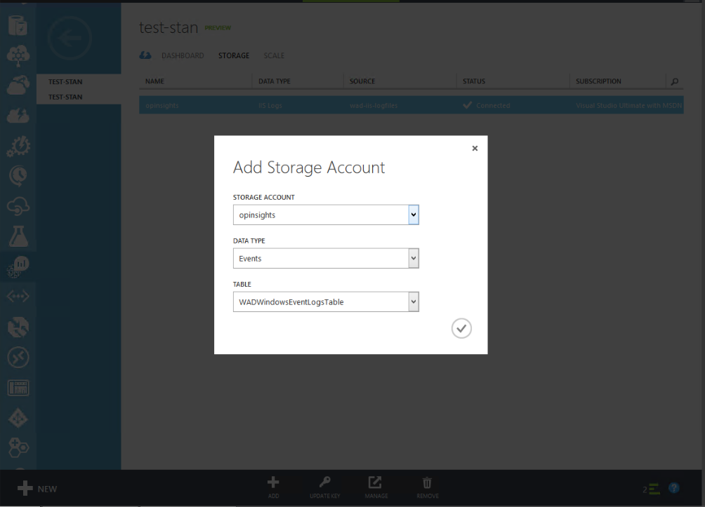 As you can see I am selecting my newly created storage account and in the first screenshot I am adding storage for IIS logs and new blob is created for that data and in the second one I am adding storage for Events that will be put in a new table. I can use for both the same storage account.