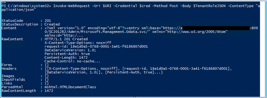 Invoke-WebRequest -Uri $URI -Credential $cred -Method Post -Body $TenantRoleJSON -ContentType 'application/json'