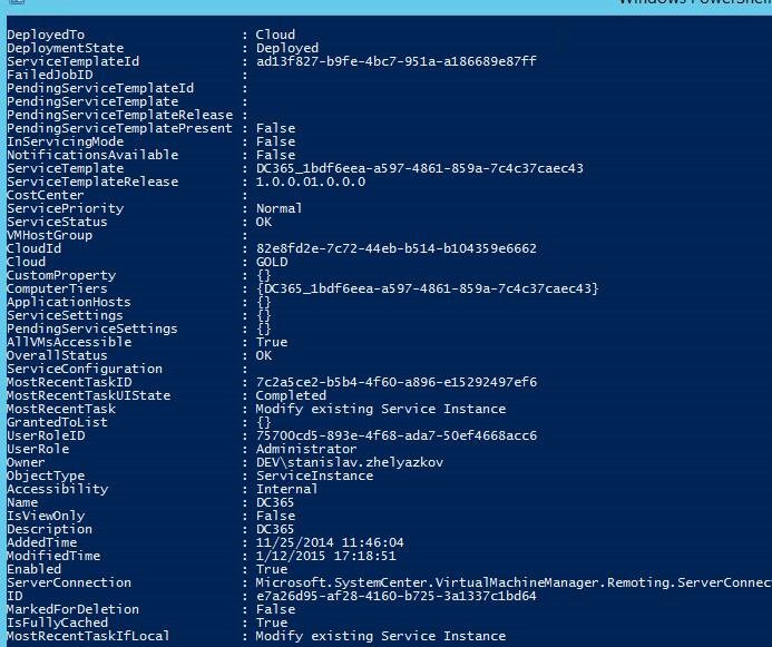 Changing these properties of SCService and VM will not show the VMs on the Azure Pack Tenant Portal for the User role we’ve assigned them above. The reason for this is Azure Pack has two ways to get VM information – one is trough VM role and the other is directly trough VM instance. If VM instance is not linked to VM role than that VM will be get trough User Role and Owner Properties of the VM but if that VM is linked to VM role than WAP will try to get the VM trough something CloudService. That CloudService is located in VMM again and it is basically the master object in our scenario. So in short we need to change UserRole and Owner properties of CloudService.