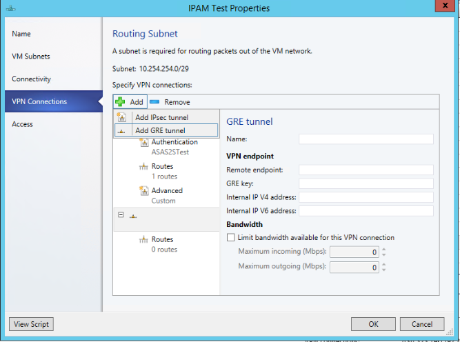 • Now we can add GRE tunnel and not only S2S VPN to a network that is connected to Windows Server Gateway: