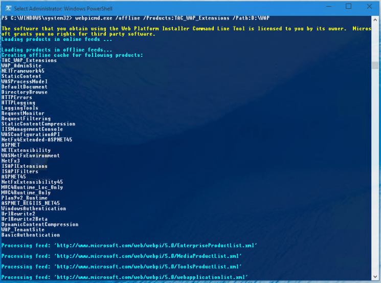 webpicmd.exe /offline /Products:TAC_WAP_Extensions /Path:D:\WAP
