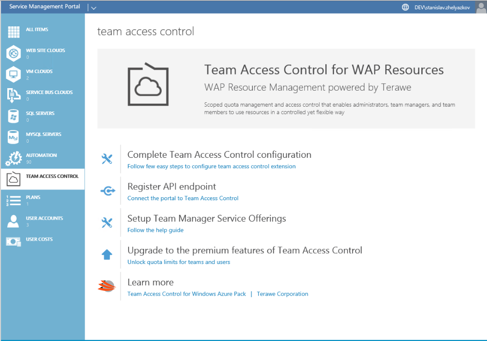 Team Access Control is a new third-party Resource Provider for Azure Pack. Along with UR5 for Azure Pack this resource provider is now available trough the Web Platform Installer.