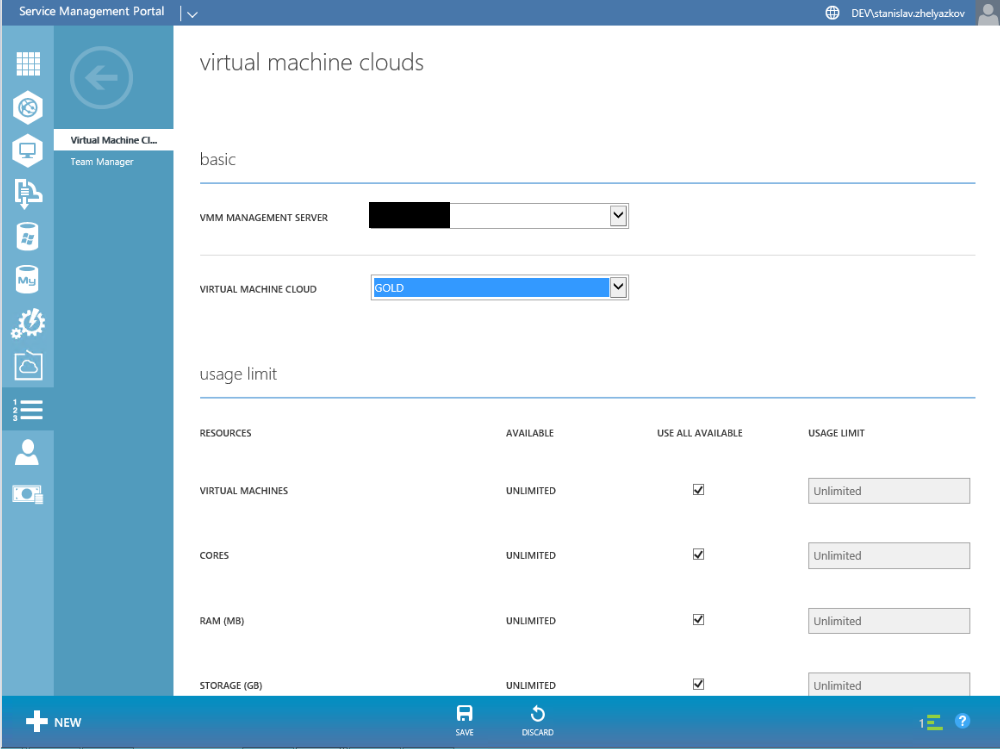 This hosting plan needs to have resources from VM Clouds and Team Manager.