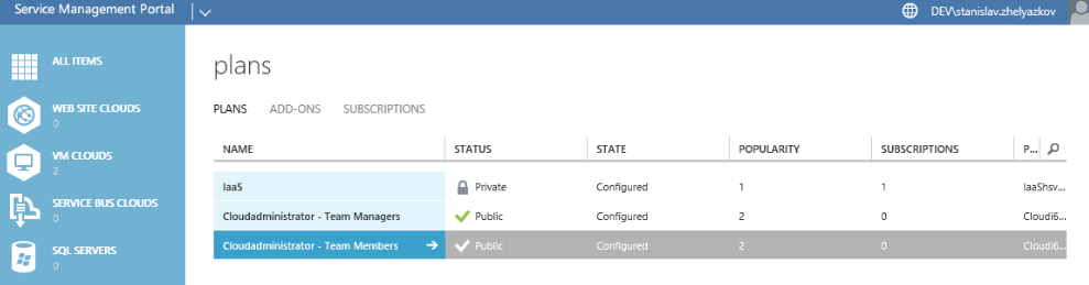Now let’s login to Azure Pack Tenant portal with manager user: