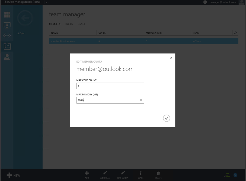 Once we add that member to that team we can also specify quota for that specific member: