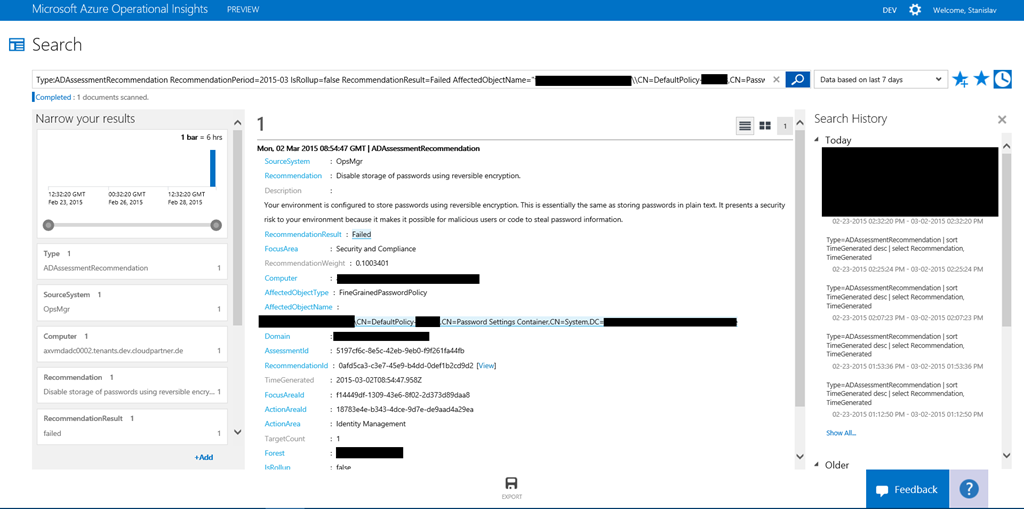 And btw after adding it we’ve found a real world problem by the recommendations from AD Assessment IP. This is a very nice addition to the Azure Operational Insights service.