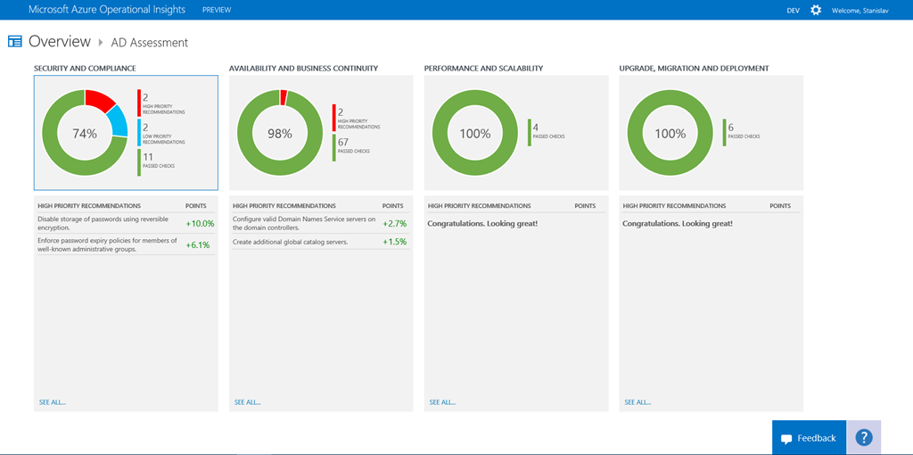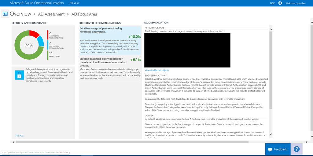 Microsoft Azure Operational Insights Preview Series – AD Assessment (Part 12)