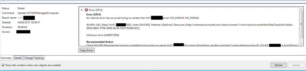 Recently I’ve stumbled on the following error when trying to update VMM agent on hosts: