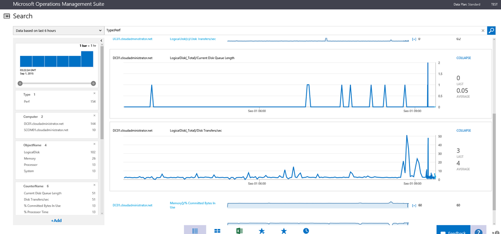 This brings cool graphics of your performance data that has been gathered. When you start initially you can narrow down the results for the last 6 hours: