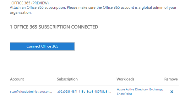 As you can see you can add multiple subscriptions which is great. Supported workloads are Azure AD, Exchange and SharePoint. I am not Office 365 expert but so far I think these are the only workloads now that support logs.