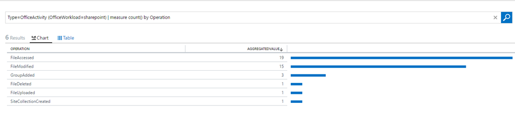 Type=OfficeActivity (OfficeWorkload=sharepoint) | measure count() by Operation