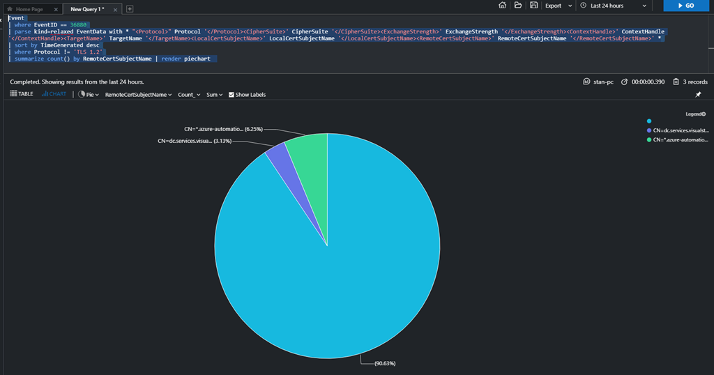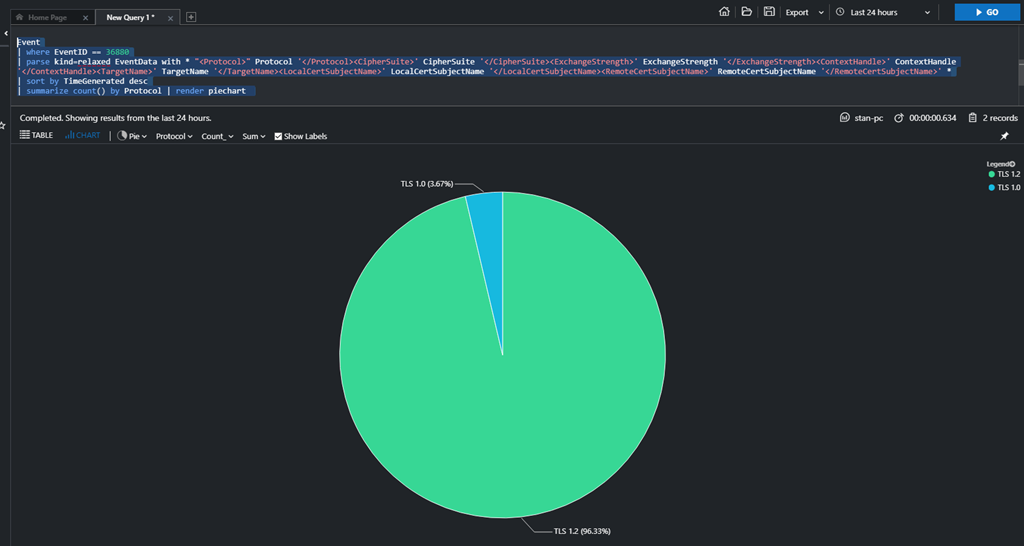 I’ve stumbled on a great article by Brandon Wilson named Demystifying Schannel on which he explains how we can enable verbose logging for Schannel to found out what protocols our machines are using. As I leave and breathe Log Analytics and love to crunch data I thought would be cool example if we can ingest that data into it and show you some cool example with the new query language on transforming data.