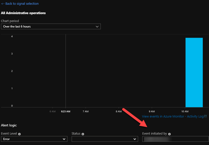 - The first option is to go to Azure Monitor -> Alerts blade (this blade is also present on each resource) -> New Alert rule. First you will select the resource and than you will select Condition. In condition blade if you select signal Activity log that will show you only some pre-defined conditions only for Activity log alert type. In Monitor Service you can select Administrative to scope only to that sub type. Keep in mind that once you select pre-defined condition there isn’t much you can select more. From the 3 options like Event level, Status and Event Initiated by it is always good idea to scope the Status at least. Activity records are generated when operation is started, accepted, started and Succeeded or Failed at the management plane.