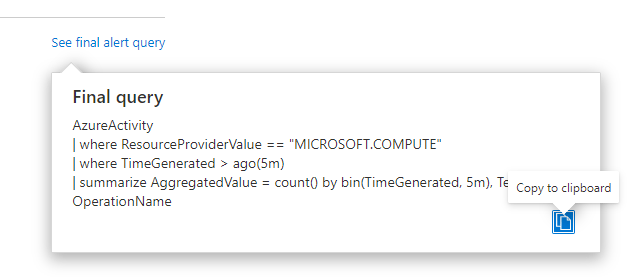 With this new UI experience you also have an option to see how the final query will look. This is the query that will be executed based on how the alert rule is defined.
