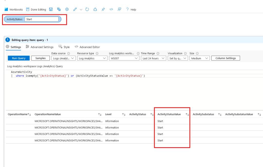 One thought on “Using Optional parameter if not configured in Azure Monitor workbooks with KQL query”