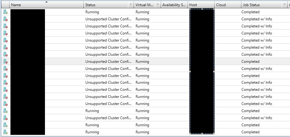 - Some or all of your virtual machines show as Unsupported Cluster Configuration