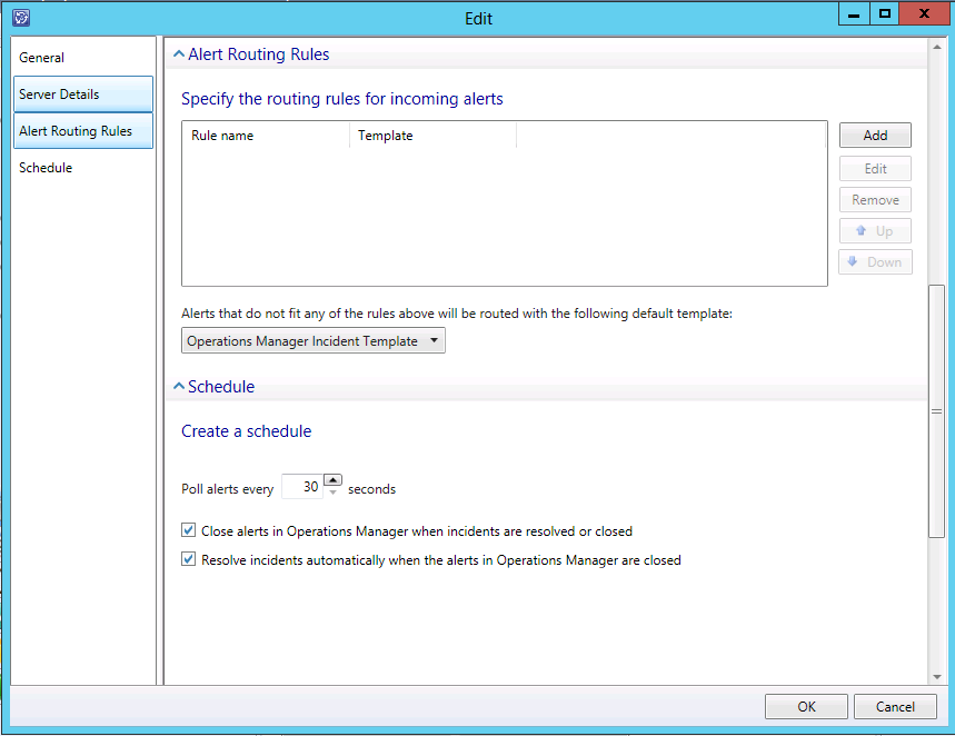Now we are ready with the templates and we can configure the routing rules in SCOM Alert Connector. I will not show how this connector is configured because it is pretty simple operation and there are a lot of articles over Internet about that.