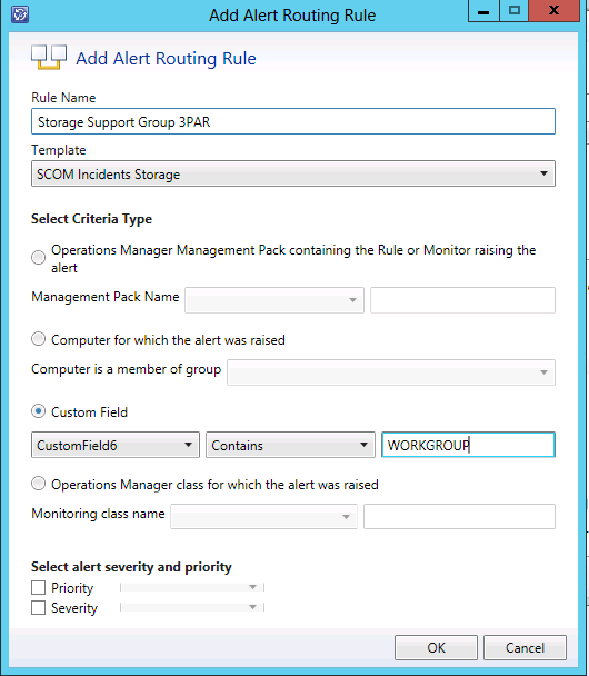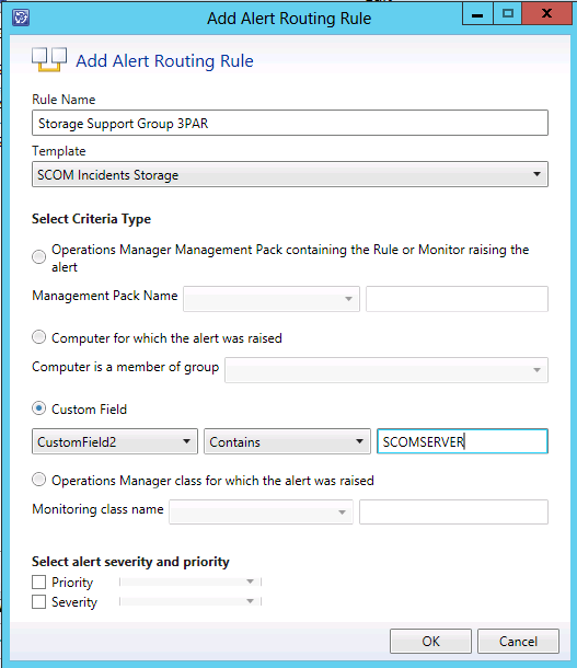 Routing Alerts from SCOM in SCSM by using Custom Field Criteria Type