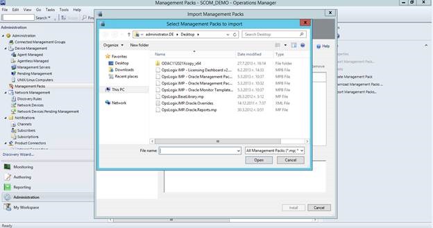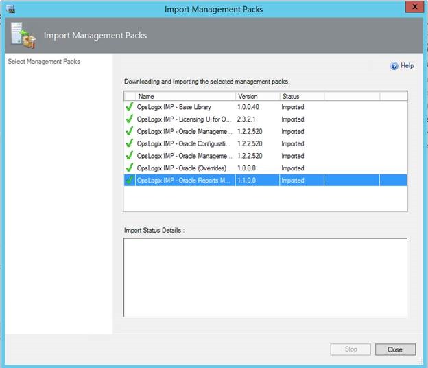 5. After this procedure you can proceed with importing the OpsLogix Oracle IMP trough the SCOM console